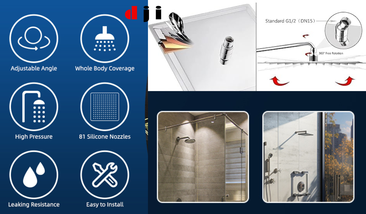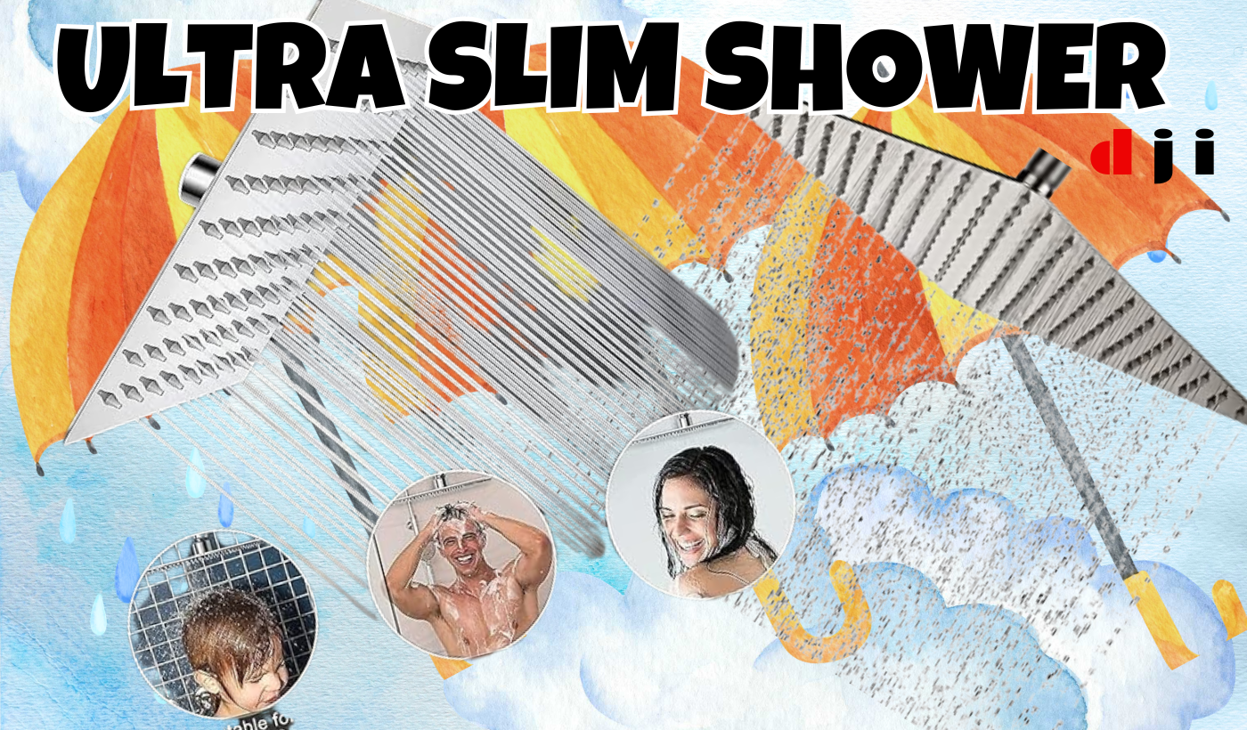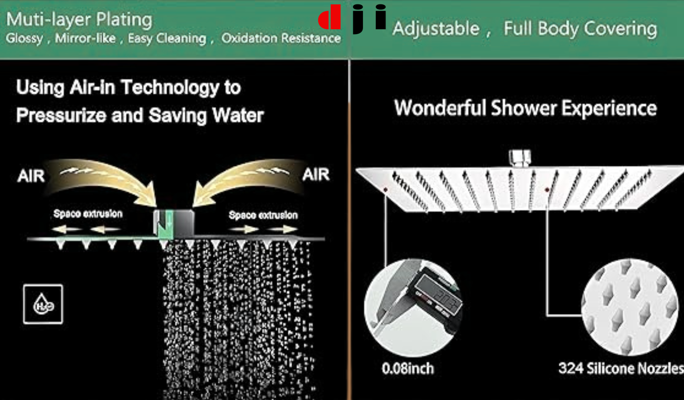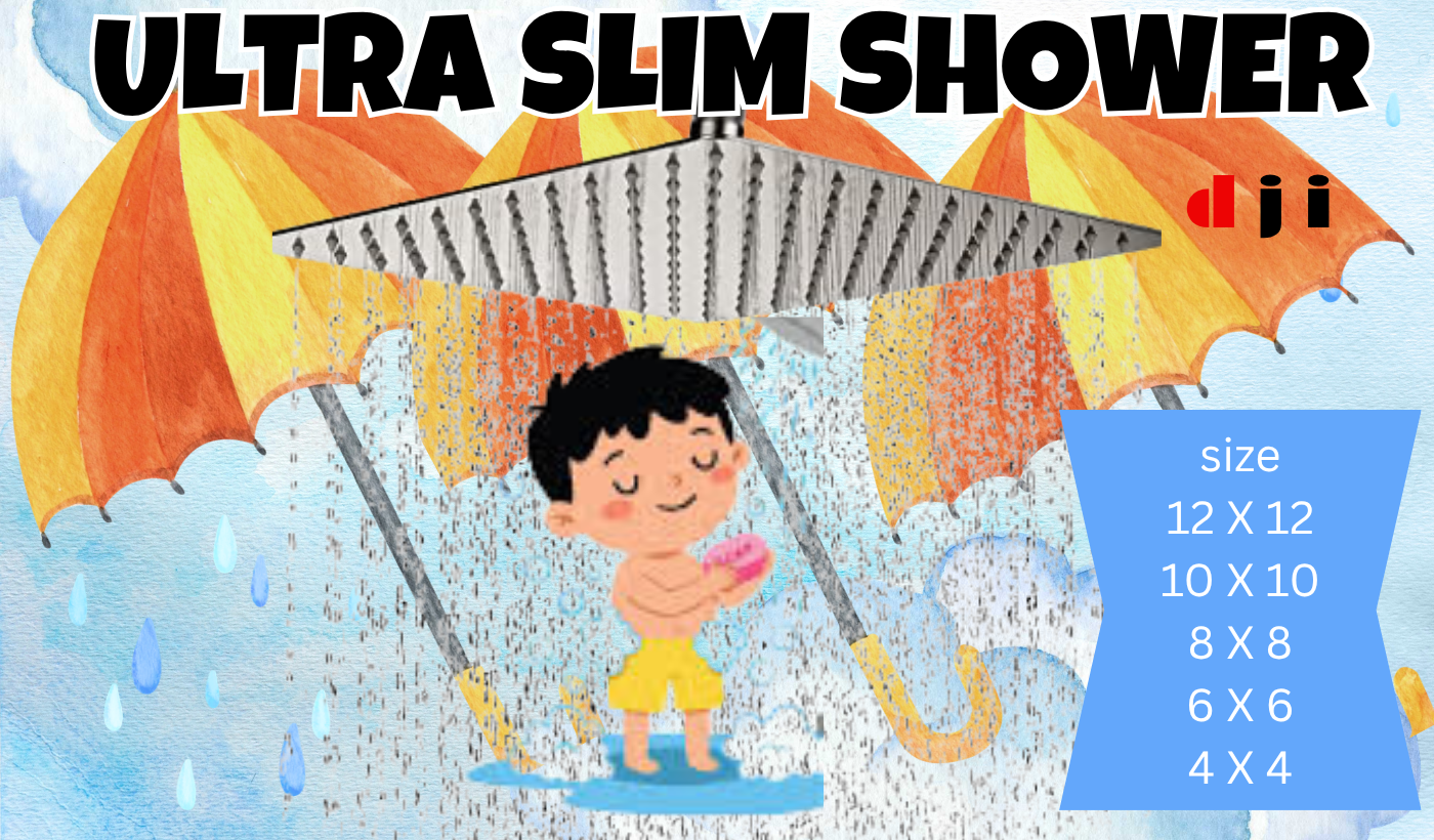 Dji 8 inch shower With 15 inch Arm Stainless Steel 304 shower head 8 inch, luxury bathroom shower 8 x 8 size, heavy metal SS-304 grade material, Ultra slim, Silver, 1