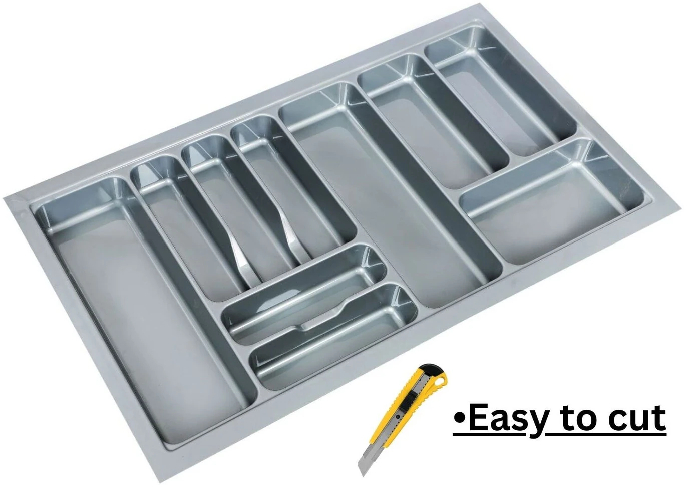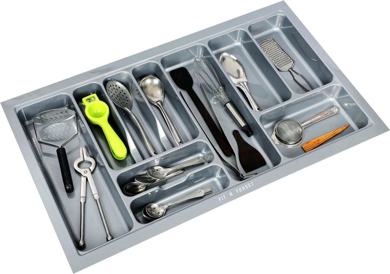 DJi PVC Cutlery Organizer for Kitchen Drawer/Cutlery Tray Organizer/Modular Kitchen Accessories – Grey (150 mm to 90 mm)