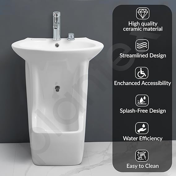 Wudu Basin/Ceramic Ablution with Leg Wash/Premium One Piece Basin/Free Standing Pedestal Basin for Bathroom (34x24x18 inch – White)
